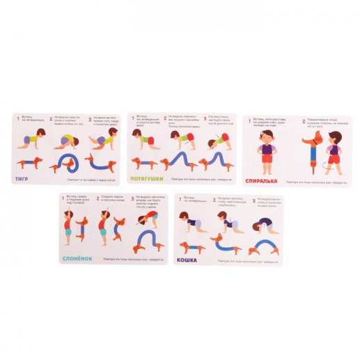 • Выполняйте упражнения с карточек. Например, тянитесь вверх и наклоняйтесь сначала в одну сторону, затем в другую, встаньте на колени и сделайте вдох, выдыхая, отведите в сторону правую ногу, а левую руку поднимите вверх. Эти и другие упражнения вы найдёте памятке.