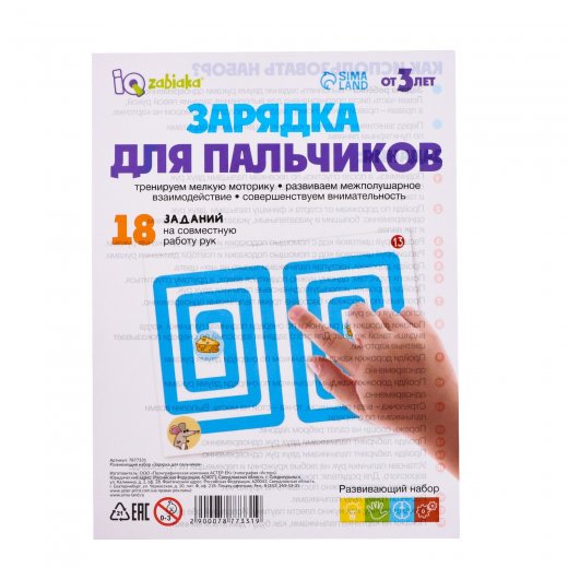 Купить Развивающие карточки Зарядка для пальчиков в Новосибирске Вы можете в магазине настольных и развивающих игр "Игры Почемучек"