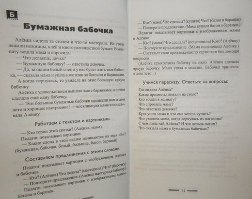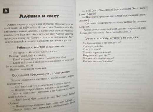 Сказки и рассказы представлены в этой книге на все буквы алфавита. Работая с определённой буквой, взрослый имеет возможность проработать текст в разных направлениях. Задание на выделение слов на заданный звук поможет в развитии фонематического слуха. Ребёнок, отвечая на вопросы взрослого, рассматривая картинки к данному тексту, научится правильно составлять предложения, попробует свои силы в самостоятельном составлении предложений без вопросов взрослого. Последнее задание направлено на развитие слухоречевой памяти, на обогащение словарного запаса.