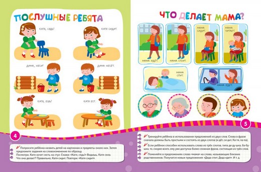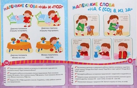 Эта книга направлена на общее развитие у ребенка умения употреблять в речи существительные с предлогами, строить фразы, простые предложения из двух-трех слов, а также сложные предложения. Яркие иллюстрации, понятные и близкие детям, сделают занятия интересными, и новые знания будут приобретаться с радостью и удовольствием!