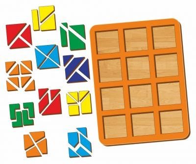 Состав набора: планшет с выемками, 12 разрезных квадратов.