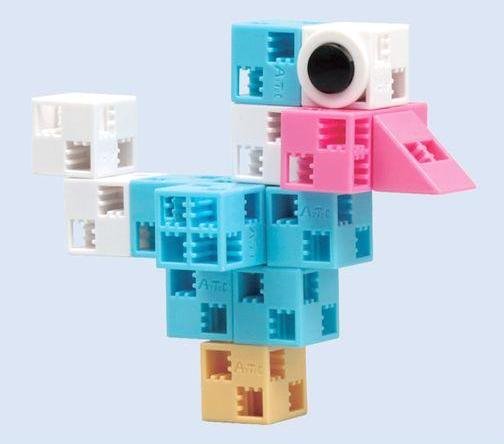 С помощью этого набора дети получают возможность «строить» из кубиков не только домики и башни, как в классических конструкторах, а все что угодно! Необычные кубики, которые можно соединять в любом направлении – по вертикали, по горизонтали и даже по диагонали! К каждому набору прилагается цветной плакат с изображением готовых конструкций. Глядя на картинку, ребенок может самостоятельно или с помощью родителей «выстроить» множество забавных объектов.