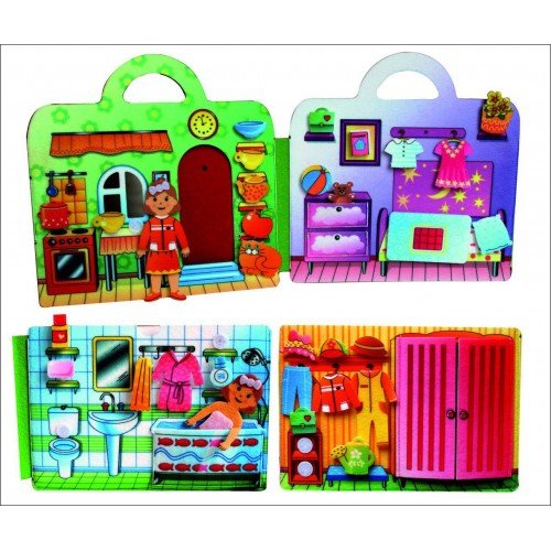 1. Рассмотрите куклу, комнаты в домике и различные предметы, которые приклеиваются на липучку;