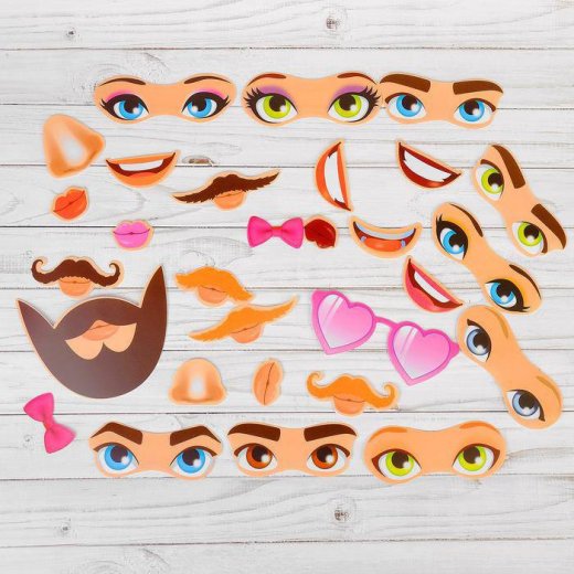 Помогите своему малышу "создать" лицо и придать ему выражение. Меняйте глаза и рты, украшайте усами и сережками, играйте и веселитесь! Предложите ребенку самому изобразить ту или иную эмоцию!