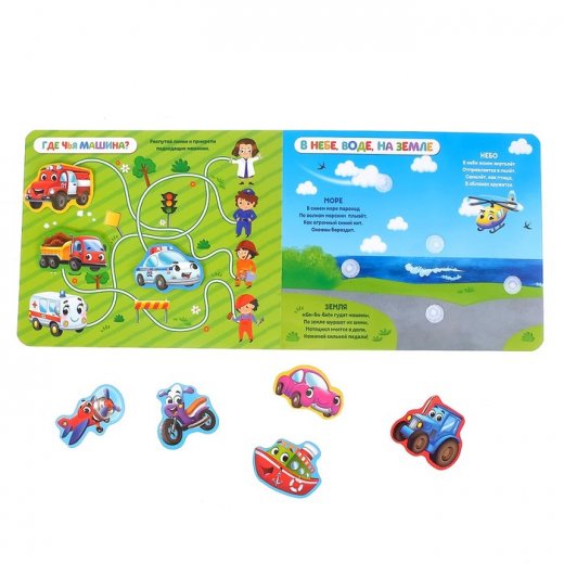 На каждой страничке тебя ждут веселые игры: найди где чья машина, отгадай веселые загадки, проверять внимательность!