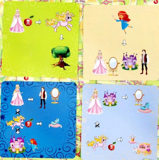Перед началом игры определитесь с тем, какой уровень игры Вы выберете. Каждый уровень отмечен цветом карточек. Зеленые – простые, синие – самые сложные. А теперь приготовьтесь, ведь начинается игра! Итак, вы – принцесса, живущая в роскошном замке среди волшебного леса.