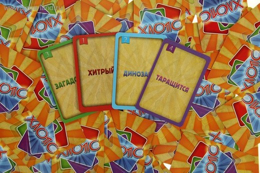 Тот, кто последним крикнул «Хлопс!», должен взять карточки первого игрока, сложить из слов предложение и показать его. Другие участники угадывают.