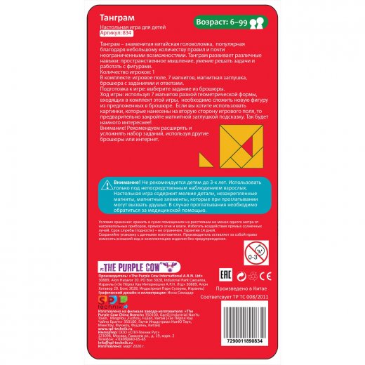 Купить настольная игра магнитная The purple cow "Танграм" в Новосибирске, Вы можете в магазине настольных и развивающих игр "Игры Почемучек"