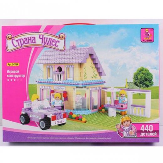 Конструктор "Вилла с машиной 440дет" состоит из 440 деталей, которые собираются в красивый дом и транспортное средство. Также в наборе есть 4 фигурки человечков, которые живут в доме и отдыхают рядом с ним во дворе. Они могут путешествовать в другие места на автомобиле или же устраивать небольшие пикники в сюжетах ребенка. Малышу не будет скучно играть с таким ярким конструктором и создавать небольшие города у себя в детской комнате из других наборов этой же серии, которые приобретаются отдельно.