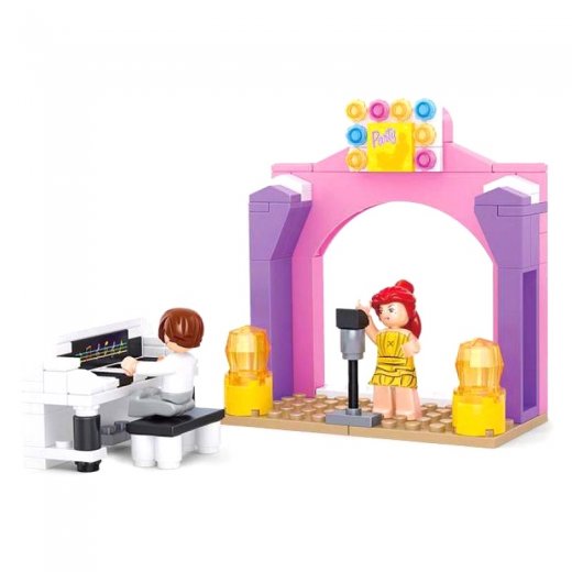 Конструктор Girls Dream от компании Sluban придется по вкусу девочкам, которые уже устали собирать бесконечные машины и самолеты, обычные модели мальчишеских конструкторов. Теперь можно будет собрать эстрадную сцену с прожекторами, певицей в длинном красивом платье и музыкантом за стильным белым пианино. Этот конструктор полностью совместим с конструкторами других марок, таких, как LEGO, Sluban, Ausini, Bela и Brick.