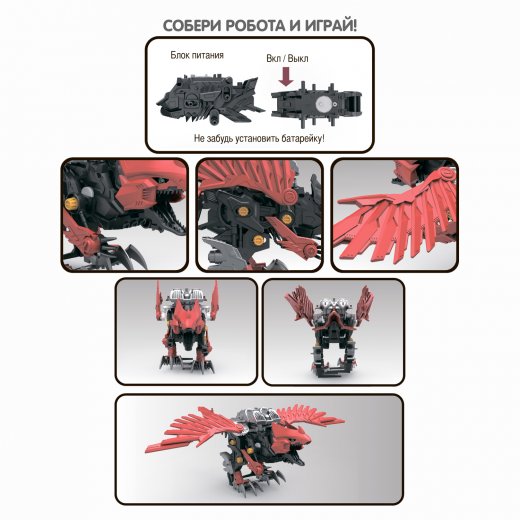 Мощные дино монстры вернулись в наше время!Хотите побывать в Парке Юрского периода? Соберите могучего робота МИКРОРАПТОРА от Bondibon со множеством функций. Динозавр ходит, открывает пасть. Передние лапы, хвост и шея подвижны. Крылья на ящере можно расправить.Но все это впереди. Сначала постарайтесь и соберите этого потрясающего робота по схеме приложенной инструкции.Сборка необычного конструктора увлечет ребенка, поможет познакомиться ближе с робототехникой.