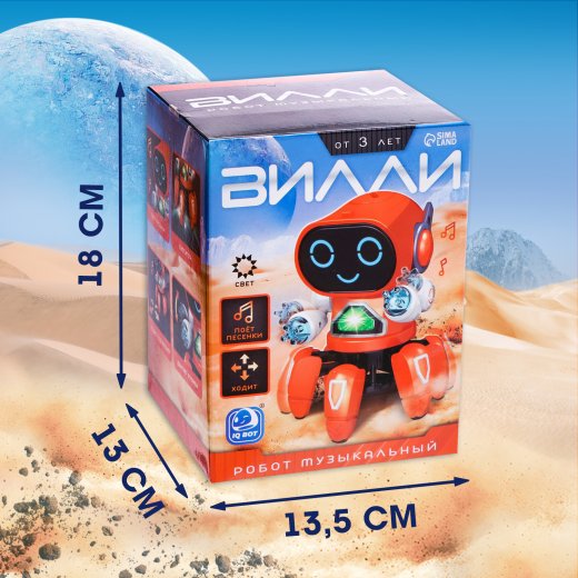 - Робот «Вилли» ходит под музыку во всех направлениях и двигает руками.