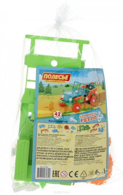 Конструктор "Ретро-автомобиль" от компании "Полесье" состоит из 42 деталей. Детали конструктора выполнены в разноцветных тонах, что придает машинке необычный вид. Конструктор - необходимая игрушка в любой детской комнате, которая надолго займет внимание вашего ребенка. После завершения сборки, модель ретро-автомобиля может стать полноценной игрушкой, у которой есть два посадочных места и небольшое пространство для груза за ними.