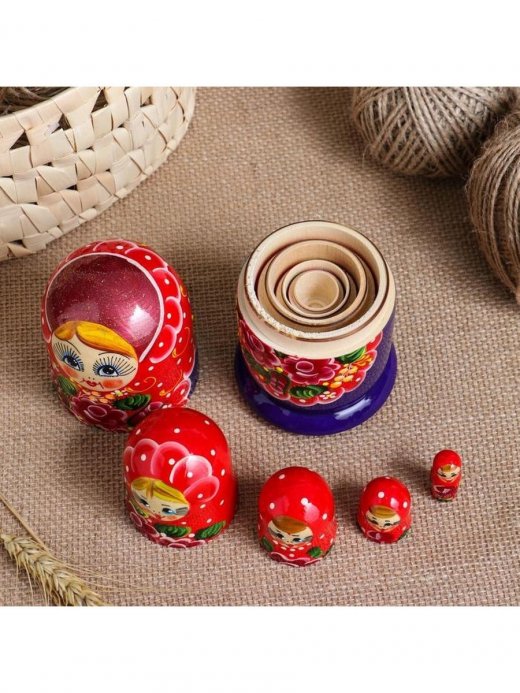 Комплект включает в себя 5 игрушек разных размеров, обязательно объединенных общей идеей росписи и цветовой гаммой. Самая маленькая матрёшка не раскрывается.