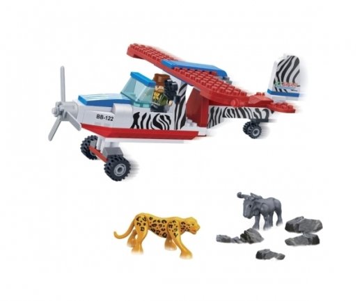 Конструктор "Сафари" позволяет ребенку собрать из разнообразных пластиковых блоков легкий одноместный аэроплан, усадить в него путешественника с кинокамерой, и, расположив фигурки гепарда и антилопы «на земле», начать увлекательное сафари. Шасси самолета вращаются, поэтому «взлет» и «посадка» станут более реалистичными, а корпус летательного аппарата местами раскрашен «под зебру». Элементы конструктора прочные, соединяются друг с другом легко и надежно.