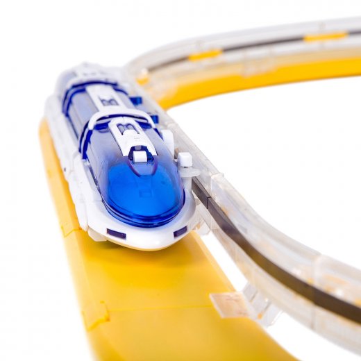 Потрясающе! Поезд едет без колес и парит в воздухе! В этой игрушке используется технология поездов на магнитной подушке. Он движется с помощью электромагнита. Также магнитные полосы установлены на направляющих путях, что позволяет поезду сохранять устойчивое положение при парении и сохранять плавность хода при большой скорости.