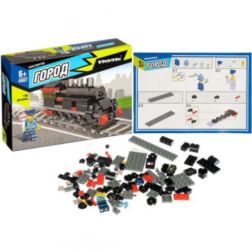 Купить Конструктор Bondibon Город Паровоз 108 дет в Новосибирске Вы можете в магазине развивающих и настольных игр "Игры Почемучек".
