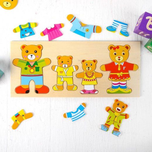 Купить пазл-вкладыш "Переодень мишку 4шт." в Новосибирске Вы можете в магазине развивающих и настольных игр "Игры Почемучек".