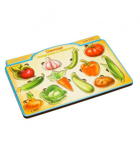 Двухслойный сортер с овощами, которые выглядят очень реалистично. Нижний слой - это половинки овощей (12 вкладышей), а верхний - целые овощи (ещё 12 вкладышей). Игра поможет объяснить ребенку понятия "часть и целое", "большой-маленький". Считайте овощи, изучайте их особенности: цвет, размер, где они растут и какие на вкус. Предложите ребенку поиграть в повара и "приготовить" блюда из этого набора овощей.
