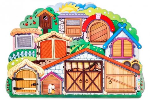 Купить Развивающая доска с окошками Ферма в городе Новосибирске Вы можете в магазине настольных и развивающих игр "Игры Почемучек"