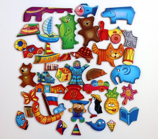 1. Рассмотрите головоломку, попытайтесь запомнить расположение игрушек; разберите и соберите пазл;