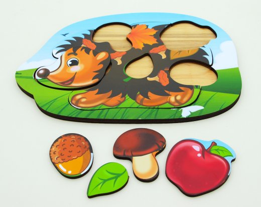 Деревянный вкладыш "Ежик" понравится вашему малышу и займет его внимание надолго. Рамка-вкладыш представляет собой прямоугольную рамку с выемками и вкладышами с изображением ежика. Ребенку предстоит правильно расставить вкладыши различных форм на основе. Малыш без труда поставит на место нужный элемент, так как углубление на основе соответствует ему по форме.