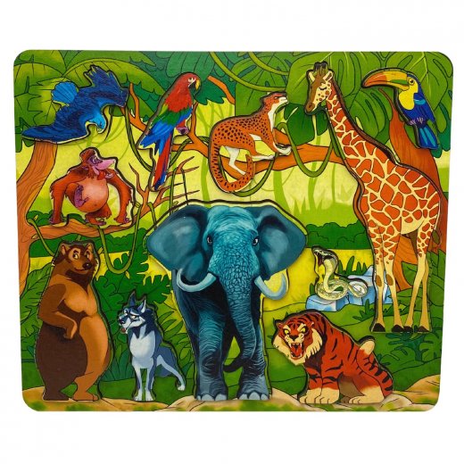 Купить Пазл рамка Кто живет в джунглях? 11 дет в Новосибирске Вы можете в магазине развивающих и настольных игр "Игры Почемучек".