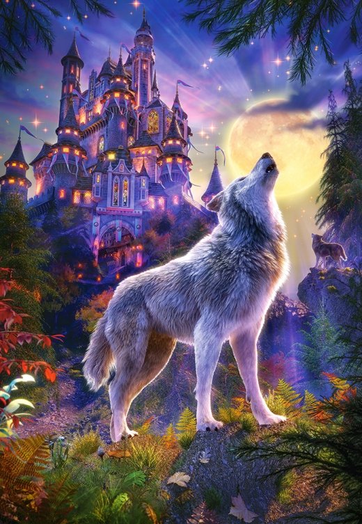 Пазлы Волчий замок – состоит из 1000 элементов, он придется по душе юным любителям собирать головоломки из большого количества элементов. Из деталей этого пазла получится собрать потрясающий пейзаж, воющий волк на фоне ночного замка, освещенного полной луной и звездами. Пазлы выполнены из высокопрочных и износостойких материалов, обеспечивающих многократность сборки и стойкость окрашивания поверхности без последующего выгорания и выцветания. У деталей сглаженные края и они легко соединяются между собой.