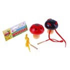Игрушка выполнена из гладко обработанного дерева, все части аккуратно детализированы. У грибочка приятная округлая форма, червячок состоит из нескольких колец.