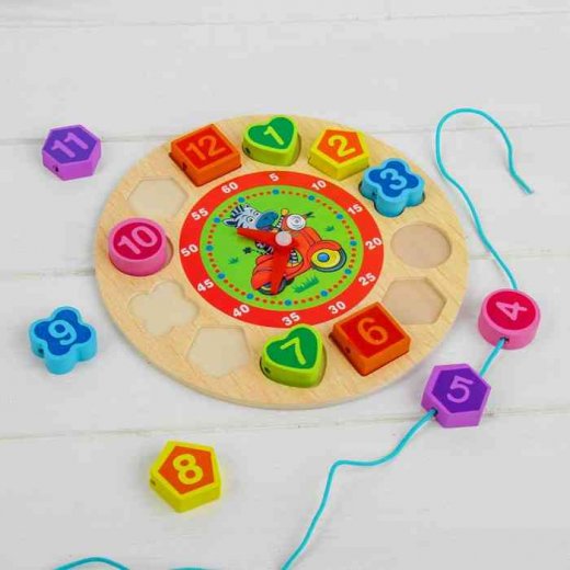 Часы шнуровка "Учим время с животными" позволят вашему малышу развить не только понимание времени, но и логическое мышление, математические способности, мелкую моторику. Ведь это не только часы, на которых понятно изображены часы и минуты, это еще и рамка вкладыш, и шнуровка с цифрами до 12.