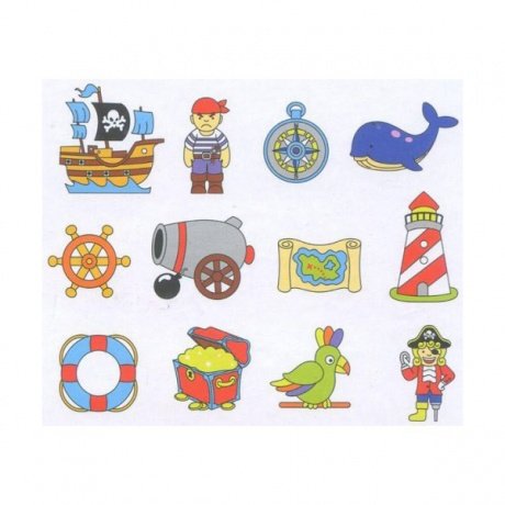 В комплекте: коробка, шнурок и 12 фигурок: компас, сундук с золотом, пушка, пират, корабль, маяк, капитан, попугай, якорь, карта и кит.