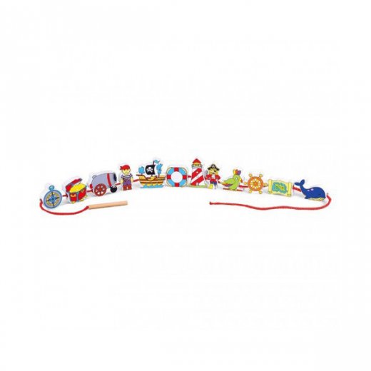 Деревянная игрушка-шнуровка "Пираты" простая, и в тоже время очень увлекательная развивающая игра. Малыш сможет насаживать бусины-фигурки на цветной шнурочек. Фигурки также можно использовать для сюжетных игр.