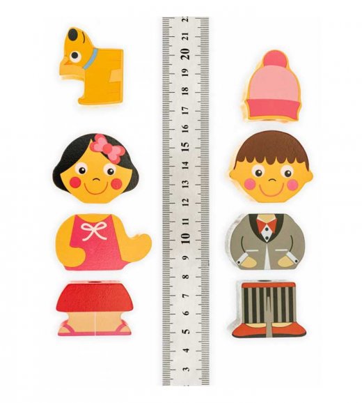 В наборе 16 деталей в виде элементов одежды.