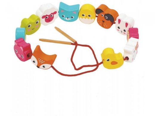 Цель игры: нанизать на шнурок все разноцветные бусинки, выполненные в виде милых и добрых зверюшек. Ребёнку будет очень интересно менять последовательность фигурок и разыгрывать с ними небольшие сценки! К обоим концам шнурка прикреплены удобные деревянные «иголки», с помощью которых можно легко продеть шнурок в отверстие бусины.