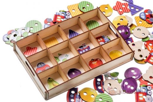 5. Игра «Чистые ушки». Предложите ребенку закрыть картинки в коробке, следуя вашей инструкции, например: звездочку закрыть грушей, самолет – квадратом, сливу – корабликом и т.д. Детям постарше усложните задание: предложите закрыть треугольником не транспорт и не желтые картинки; яблоком закрыть не геометрические фигуры и не наземный транспорт и т.д.