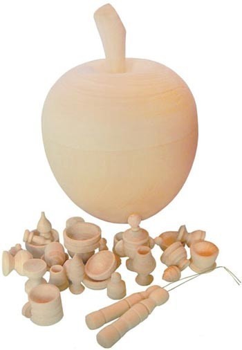 Футляр - неокрашенное деревянное яблоко 70 мм в высоту