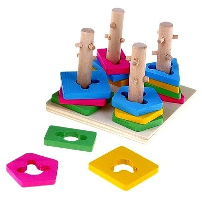 Эта увлекательная головоломка развивает пространственное мышление, цветовое восприятие, логику и мелкую моторику рук, она станет первой встречей ребенка с миром геометрических фигур.