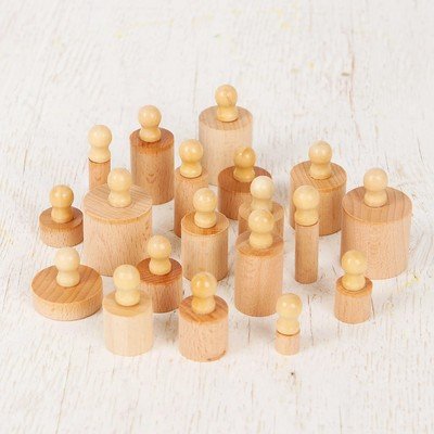 Развивающий набор цилиндров "Больше меньше" - это самый популярный материал для работы с детьми по методике Марии Монтессори. В набор входит 4 бруска с вкладышами. Их называют цилиндры или гирьки. Все вкладыши отличаются по размеру, высоте и объему.