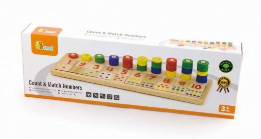 В состав входят: - 50 разноцветных деревянных колечек - 20 квадратных пластинок, по 10 с цифрами и точками - подставка - 10 колышек.