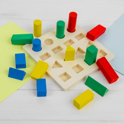 Купить логические столбики "Форма" в Новосибирске Вы можете в магазине развивающих и настольных игр "Игры Почемучек"
