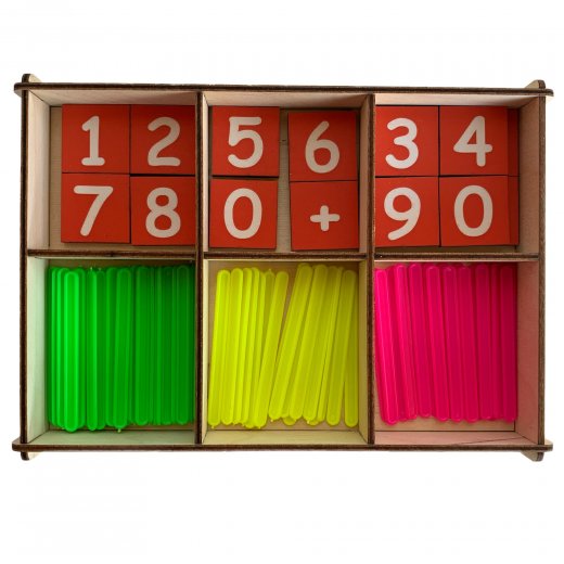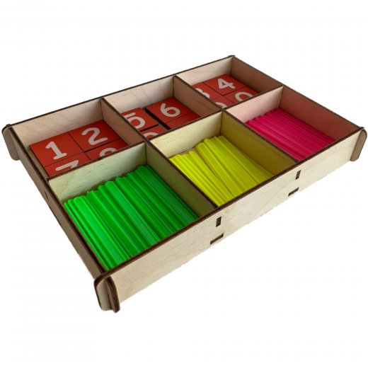 "Палочки для счёта в коробках" предназначен для дошкольников, которые начинают свое знакомство с миром математики. В комплекте находятся брусочки с цифрами и математическими знаками и счетные палочки 3-х цветов. Дети смогут выучить цифры, использовать деревянные брусочки с их изображением для составления и решения простых математических примеров и задач. Все компоненты находятся в деревянном ящичке-пенале с отсеками, в котором их удобно хранить.