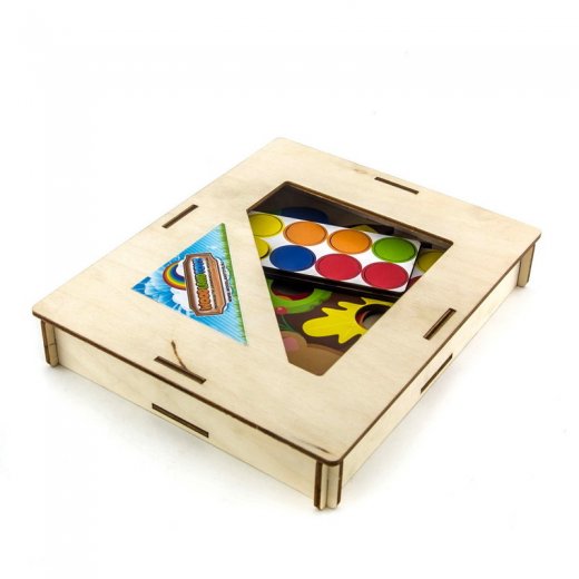 Комплектация: деревянная коробка для хранения, 2 цветные основы, комплект кругов.