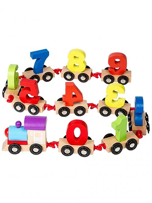 Играя в деревянный развивающий паровозик, Вы каждый раз называете ребенку число на паровозике, и он очень быстро запомнит цифры. Цифры у деревянной игрушки паровозика разного цвета, это сделано для того, чтобы в процессе игры ребенок научился различать цвета и запомнил их.
