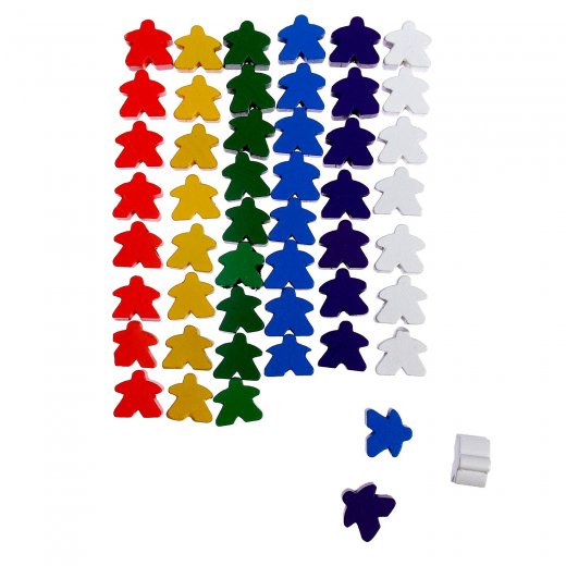 В наборе 50 фигурных пешек. Все детали сделаны из прочного и экологичного материала — дерева — и покрыты нетоксичными красками.