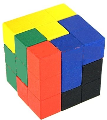 Кубик головоломка из 7 деталей – состоит из семи разноцветных и имеющих разную форму фигур. Необходимо составить них кубик - это задача головоломки. Задача не сложная и в тоже время не простая. Её можно назвать увлекательной. Рассказывают, что собрать куб можно 240 различными способами! У детей она развивает пространственное воображение и начальные понятия логики. Они увлекательно играют этими фигурами и составляют из них разнообразные объекты. Именно всевозможные объекты и являются второй и большей частью головоломки. Из фигур входящих в набор этой головоломки можно собрать большое количество интересных фигур. Приведём только несколько: Колодец, Кресло, Крест, Кристалл, Кровать, Кровать с изголовьем.