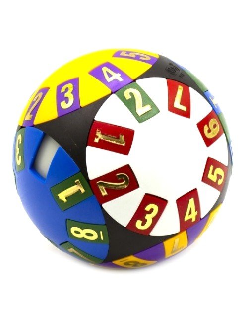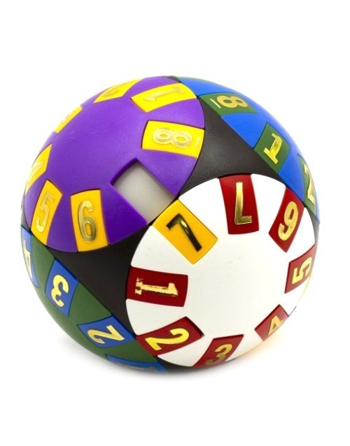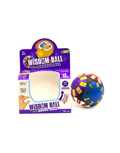 Название головоломки «Висдомбол» (англ. Wisdom Ball, Mind Twister) дословно можно перевести как «шар мудрости». Головоломка представляет собой шар с шестью вращающимися дисками, которые касаются друг друга в местах соприкосновения. Каждый диск окрашен в свой цвет и имеет восемь пронумерованных плиток, расположенных вдоль края. На белом диске находится только семь плиток, вместо восьмой плитки – пустое место, которое позволяет переместить туда плитку с цифрой с другого диска. Необходимо разместить все плитки с цифрами так, чтобы на каждом диске находились плитки того же цвета, по порядку от 1 до 8 (7) и в той же ориентации.