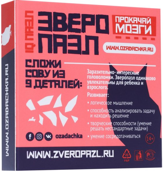 Купить Головоломку Озадачка Зверопазл Сова в Новосибирске Вы можете в магазине развивающих и настольных игр "Игры Почемучек".