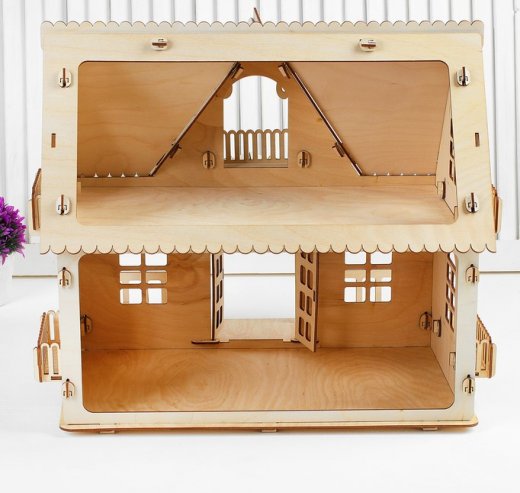 Компактный деревянный домик, изготовленный из фанеры, устойчивый, экологичный. Домик состоит из двух этажей и двух просторных комнат. На первом этаже предусмотрен выход на террасу. К домику можно приобрести набор мебели из 6 комнат. Домик высотой 42 см, займёт не много места у Вас дома.Собирается без клея. Деревянные игрушки экологически безопасны, приятны для детских ручек, способствуют развитию тактильных ощущений. Игрушки издают приятный теплый запах натурального дерева, а не пластмассы. Материал: фанера, 3мм. Товар сертифицирован и безопасен в использовании. Рекомендовано к использованию в качестве обучающего материала в детских дошкольных учреждениях.