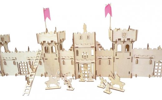 Конструктор деревянный Чудо крепость – это идеальная игрушка для мальчишек. Крепость собирается без использования клея, все элементы легко и прочно соединяются друг с другом, а в случае переезда вы сможете также легко и быстро его разобрать. После сборки получается достаточно крупное сооружение, состоящее из четырех башен, пяти стен и ворот. На каждой башне есть удобные площадки и лесенки для расстановки рыцарей, в стенах встроены поднимающиеся железные засовы, а в главной надворотной башне засов поднимается и опускается при помощи специального сборного механизма.