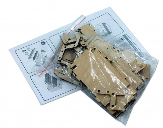 Набор мебели «Прихожая» создан специально для одной из комнат Конструктора «Кукольный дом». Мебель выполнена из березовой фанеры, но небольшие детали, например, ручки на дверцах, сделаны из пластика. Все элементы собираются без клея, просто вставляются в пазы, крепление очень прочное и надежное.